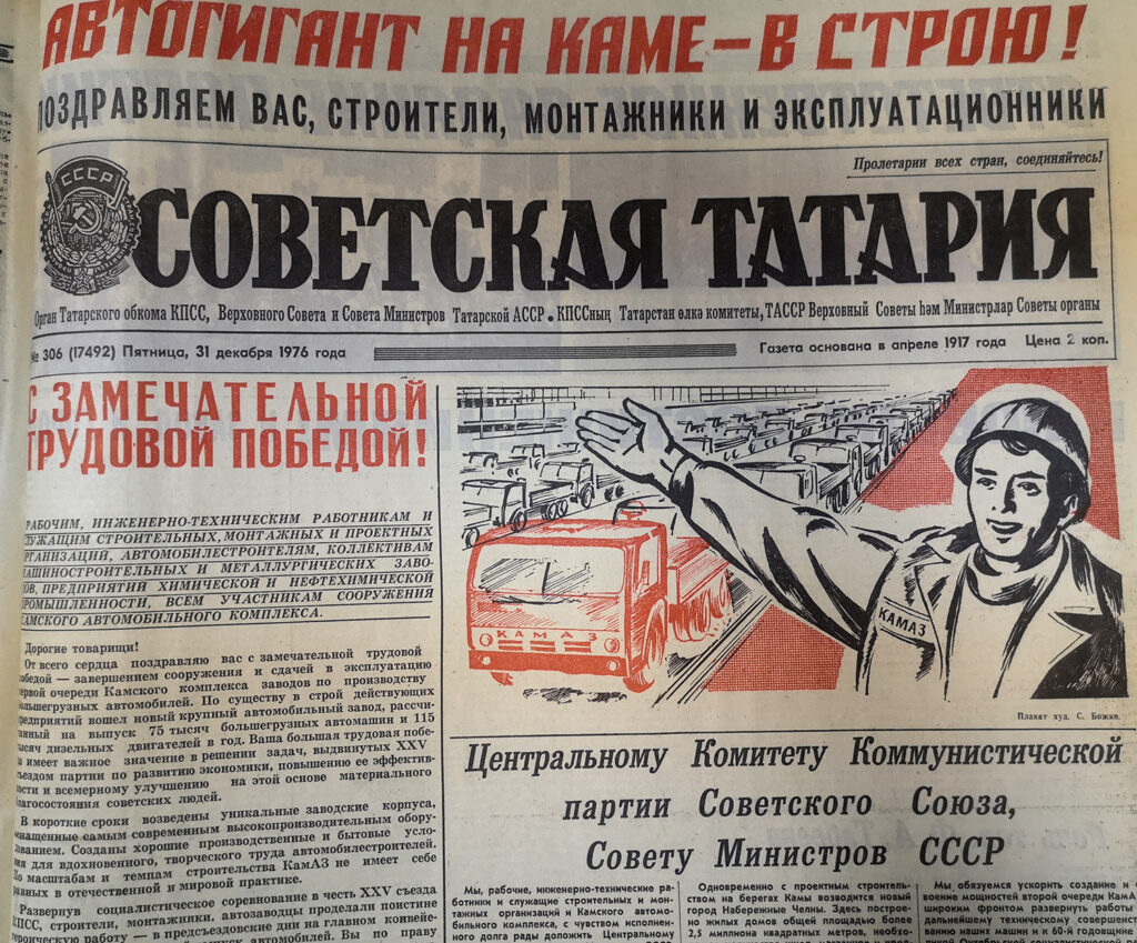 Новый прыжок во времени - 1976 год. 1 января газета вышла с изображением «КамАЗа» на первой полосе – камский автогигант поставил производство грузовиков на конвейер.