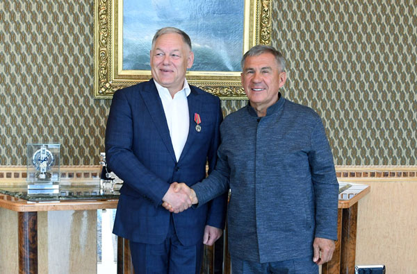 Во время встречи Рустам Минниханов вручил Вячеславу Петушенко медаль в честь 100-летия ТАССР за плодотворное сотрудничество и существенный вклад в развитие Татарстана.