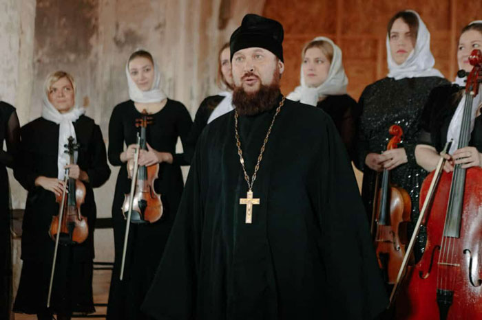 Отец Анатолий с участниками фестиваля «Звуки под сводом» в Ризоположенском храме села Тихий Плёс.