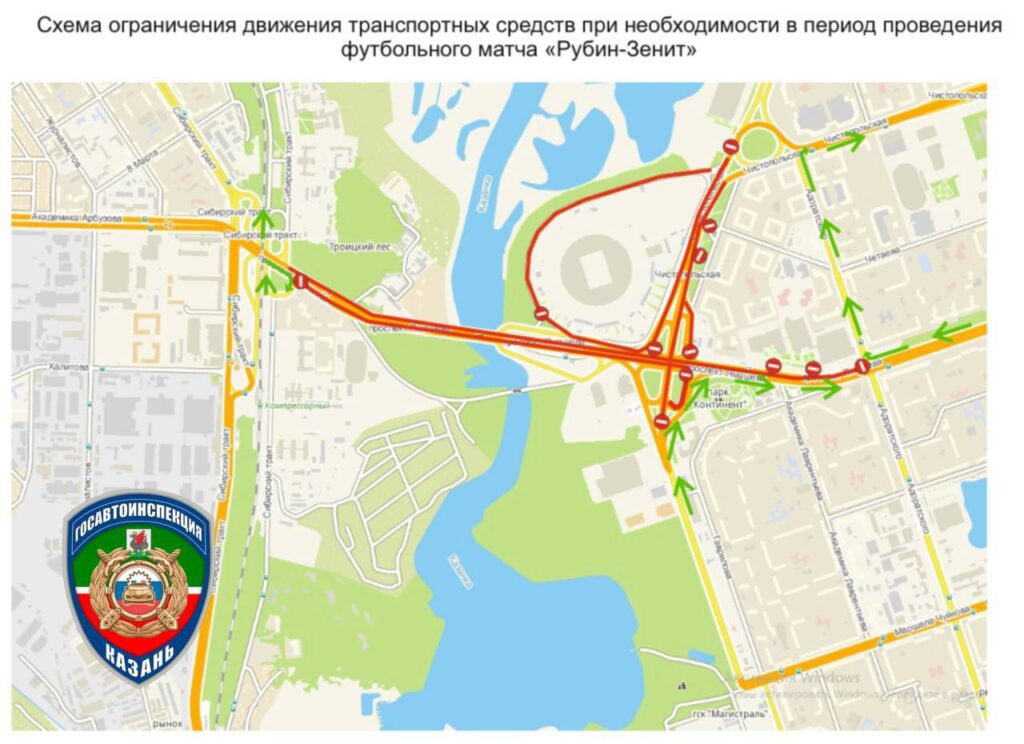 27 июля в Казани ограничат движение и парковку транспорта в районе «Ак Барс Арены». Меры принимаются на время футбольного матча между «Рубином» и «Зенитом», объяснили в городской Госавтоинспекции.