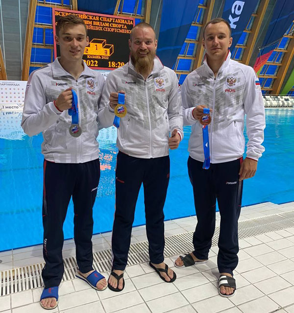 21 августа начались соревнования Спартакиады во Дворце водных видов спорта, где выступают прыгуны в воду. Выступления продлятся до 24 августа, а в первый день прошли финалы на 3-метровом трамплине у мужчин и синхронных прыжках с 10-метровой вышки у женщин. Сборная Татарстана выиграла две медали. Никита Шлейхер стал вторым, Александр Белевцев выиграл бронзовую награду, а победил Евгений Кузнецов (на снимке – в центре).
