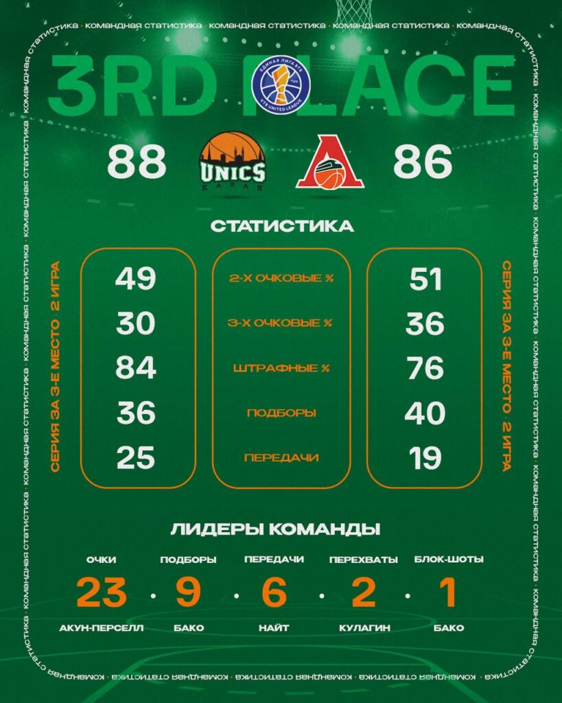 УНИКС увеличил отрыв в борьбе за бронзу Единой Лиги ВТБ. Второй матч против «Локомотива-Кубани» вновь завершился победой — 88:86.